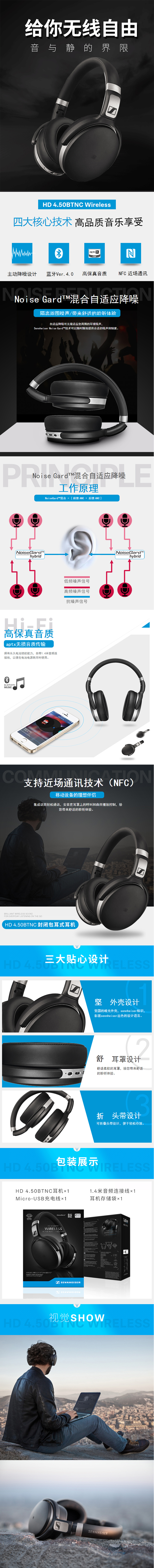 森海塞尔(SENNHEISER)|耳机,-SENNHEISER/森海塞尔 HD4.50BTNC 头戴式无线降噪蓝牙耳机